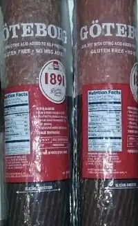 Goteborg sausages, named after the second largest city in Sweden, is a type of summer sausage of beef and pork. Being a cured, dried, and smoked sausage, cooking it is not necessary, and like other summer sausages, it historically could be kept without refrigeration.[6] This was especially desirable during periods of high temperatures where fresh meats would otherwise spoil and where refrigeration was not available.[6] Most Goteborg sausages sold in Hawaii today are made by Hormel, the same makers of the popular SPAM.[7][8][9]