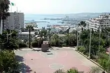 The Government Palace crowns the Boulevard Mohamed-Khemisti, a monumental perspective created in the early 20th century on former military grounds, which also includes the Grande Poste d'Alger.[4] The plaza or Forum in front of the Government Palace, formerly an open space but now closed to the public,[1] overlooks Algiers with a broad view towards the sea. Bordering that forum is also the Central Library Arts And Culture, a public library. Just below it, in a public garden, stands the Memorial to the Liberation of Algeria.