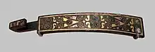 A belt hook inlaid with gold and silver, from either the late Warring States period (403–221 BC) or early Western Han dynasty