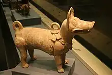 The Minister Coachman (Taipu 太僕), also known as the Grand Coachman, was responsible for the maintenance of imperial stables, horses, carriages and coachhouses for the emperor and his palace attendants, and for the supply of horses for the armed forces.[87] His latter duty entailed the supervising of large breeding grounds of frontier pastures, tended by tens of thousands of government slaves.[88] By the reign of Emperor Wu of Han (r. 141–87 BC) these contained 300,000 warhorses intended for use in campaigns against the nomadic Xiongnu Confederation.[89] Some of the Minister Coachman's subordinates managed stables outside the capital city. These stables housed Ferghana horses that were imported or gathered as tribute from Central Asian countries.[90]
