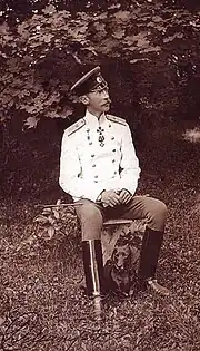 Grand Duke Dmitry Konstantinovich of Russia (Russian: Дми́трий Константи́нович; 13 June 1860 – 28 January 1919) was a son of Grand Duke Konstantin Nikolayevich and a first cousin of Alexander III of Russia. He followed a military career. Although he never played any political role, as a relative of Tsar Nicholas II, he was executed by firing squad at the walls of Peter and Paul Fortress during the Russian Civil War.