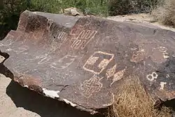![]() Petroglyphs on a rock in Grapevine Canyon. | |