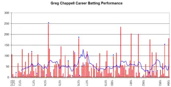 Gregory Stephen Chappell AO MBE (born 7 August 1948) is a former cricketer who represented Australia at international level in both Tests and One-Day Internationals (ODI). The second of three brothers to play Test cricket, Chappell was the pre-eminent Australian batsman of his time who allied elegant stroke making to fierce concentration. An exceptional all round player who bowled medium pace and, at his retirement, held the world record for the most catches in Test cricket,[1] Chappell's career straddled two eras as the game moved toward a greater level of professionalism after the WSC schism.[2]