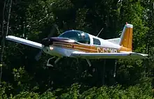 All models of the AA-1 accommodate two people in side-by-side seating under a sliding canopy and are noted for their exceptionally light handling. The Yankee and its four-seater siblings, the AA-5 series, feature a unique bonded aluminum honeycomb fuselage and bonded wings that eliminate the need for rivets without sacrificing strength. The wide-track main landing gear struts are laminated fiberglass for shock absorption, marketed as the "Face Saver" design by American Aviation.[3][4][5][6][8][9]