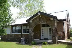 The Guy Home Economics Building is a historic school building on the campus of the Guy-Perkins School District, east of Guy, Arkansas. It is a single story stone structure, with a gabled roof that features exposed rafter ends and large Craftsman brackets at the gable ends. A single-story gabled porch, with an arched opening, shelters the main entrance. It was built in 1936 with funding support from the Works Progress Administration.[2]