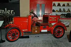 They also provided supplementary equipment such as their eight-horsepower fire engine. The Gwynnes Eight vehicle range included a light fire engine equipped with Gwynnes' own pumps. Two examples are preserved. One was built in 1922 for the Marconi Company's factory fire brigade and is now at Coventry Museum of Transport. The other was stationed at East Raynham in Norfolk and is now at Holkham Hall.[7][8]