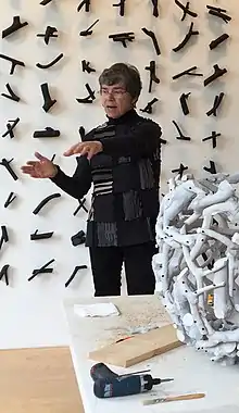 She expanded the boundaries through the development of dramatic new installations and the use of new kinds of materials. She is particularly well known in the areas of: 1) sculpture; 2) installations; 3) word works; 4) basketry.[4] She has won awards including the National Endowment for the Arts Award of Distinction. Her works are held in the permanent collections of the Smithsonian, the Philadelphia Museum of Art, and the San Francisco Museum of Modern Art, among others. In 2003, The Oral History Center of the Bancroft Library at UC Berkeley, released her oral history.[5] Her personal papers are in the Smithsonian Institution, Washington, DC.[6]