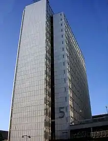 The Hötorget buildings (Swedish: Hötorgshusen or Hötorgsskraporna, "-scrapers") are five high-rise office buildings in Stockholm, Sweden. Located between the squares Hötorget and Sergels Torg in the central Norrmalm district, they stand 72 meters tall and are a clearly visible landmark.