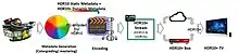 Live use cases are possible by delivering HDR10+ metadata in every frame. HEVC encoders generate and inject metadata on live content and mobile phones record video and create HDR10+[29] metadata in real-time during recording. Live encoding is detailed in the Live Encoder Workflow diagram and real time broadcast operations are supported at the point of transmission enabling a metadata-less broadcast operation.