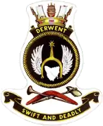 HMAS Derwent (F22/DE 22/DE 49), named for the Derwent River, was a River-class destroyer escort of the Royal Australian Navy (RAN). She was laid down by Williamstown Naval Dockyard in 1959, and commissioned into the RAN in 1964. During the ship's career, she was deployed to South East Asia on 23 occasions, including operations during the Indonesia-Malaysia Confrontation, and escort of the troopship HMAS Sydney to and from the Vietnam War. Multiple flag-showing cruises were also embarked upon, with port visits throughout Asia, the Indian Ocean, and the Pacific Ocean. Derwent was also briefly used to portray a fictional vessel for the British drama series Warship.