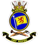 On 2 December 2001, Kanmibla and the frigate Adelaide were deployed to the Persian Gulf as part of Operation Slipper, to enforce UN trade sanction against Iraq.[19] This deployment concluded on 4 March 2002.[19] The ship returned to the Gulf on 13 February 2003.[20] During this deployment, which concluded on 14 June, she was involved in the 2003 invasion of Iraq, served as a command-and-control ship during operations in the northern waters of the Gulf, and helped deliver relief supplies to Baghdad.[20] The ship received a Meritorious Unit Citation on 27 November 2003 for her service during this deployment.[21]