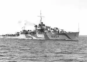 The River-class frigate was designed by William Reed of Smith's Dock Company of South Bank-on-Tees. Originally called a "twin-screw corvette", its purpose was to improve on the convoy escort classes in service with the Royal Navy at the time, including the Flower-class corvette. The first orders were placed by the Royal Navy in 1940 and the vessels were named for rivers in the United Kingdom, giving name to the class. In Canada they were named for towns and cities though they kept the same designation.[5] The name "frigate" was suggested by Vice-Admiral Percy Nelles of the Royal Canadian Navy and was adopted later that year.[6]