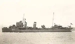 HMS Echo was an E-class destroyer of the British Royal Navy that saw service in the Atlantic, Arctic and Mediterranean theatres during World War II, before being transferred to the Royal Hellenic Navy in 1944, and renamed Navarinon, until scrapped in 1956.[1]
