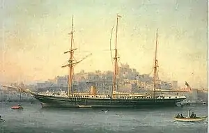 Built by Robert Steele and Co, Greenock in 1878 for Charles Joseph Lambert as a private yacht named Wanderer and described as "the most luxurious private steam yacht ever built".[2] She was registered with the Royal Yacht Squadron and became known as RYS Wanderer, based at Cowes, Isle of Wight.[3]