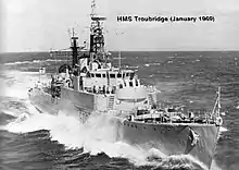 - ↑ "H.M.S. Troubridge Commissions". Navy News. August 1957. p. 11. Retrieved 14 September 2018.
