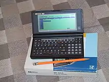 The HP 95LX Palmtop PC (F1000A, F1010A), also known as project Jaguar,[8] is Hewlett Packard's first DOS-based pocket computer, or personal digital assistant, introduced in April 1991 in collaboration with Lotus Development Corporation. The abbreviation "LX" stood for "Lotus Expandable".[9] The computer can be seen as successor to a series of larger portable PCs like the HP 110 and HP 110 Plus.