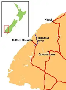 - ↑ Fraser, Rebekah (13 November 2012). "Hollyford link 'madness'". The Greymouth Star. Xtra News Community 2. Retrieved 6 January 2013.