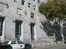 ![]() Aerial view of the San Francisco Hall of Justice complex. View facing northwest, with Bryant Street in the foreground and I-80 in the background. | |