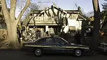 Moreover, Michael would not be able to drive in the new film, unlike his 1978 counterpart who stole Loomis' car so that he could drive back to Haddonfield.[23] The Dr. Loomis character was also to be more intertwined with that of Michael; Zombie reasoned that the character's role in the original was "showing up merely to say something dramatic".[22] Although Zombie added more history to the Michael Myers character, hence creating more original content for the film, he chose to keep the character's trademark mask and Carpenter's theme song intact for his version (despite an apparent misinterpretation in an interview suggesting the theme would be ditched).[20] Production officially began on January 29, 2007.[25] Shortly before production began, Zombie reported that he had seen the first production of Michael's signature mask and commented, "It looks perfect, exactly like the original. Not since 1978 has The Shape looked so good".[26] Filming occurred in the same neighborhood that Carpenter used for the original Halloween.[23]