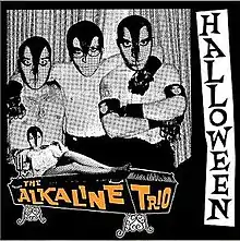 The punk rock band Alkaline Trio recorded a cover version of "Halloween" in August 2002 while on tour. Their version was released as a single through Asian Man Records, with a cover of "Children in Heat" (from "Horror Business") as the B-side, and given away exclusively to attendees at their performance on October 31, 2002 at the Metro Chicago. This performance was filmed and released on DVD in 2003 as Halloween at the Metro, the fourth installment in Kung Fu Films' The Show Must Go Off! series. In 2004 the band re-released the single as a download exclusively to members of their fan club the Blood Pact, adding a cover of The Damned's "Wait for the Blackout" recorded in 2003 at the BBC's Maida Vale Studios.[4]