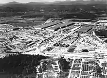 Aerial view of the K-25 site circa 1945, showing Happy Valley in the foreground