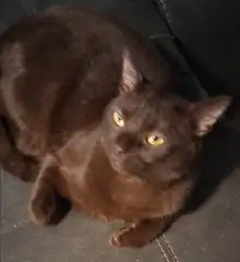 The Havana Brown is an intelligent cat that often uses its paws both to examine objects and to communicate with its owners. Curiosity brings them to the door as visitors arrive rather than preferring to be hidden as many cats will do. It is not unheard of for a Havana Brown to place paws on someone's thigh and offer a meow of introduction. It is playful and curious, but rarely destructive unless left without companionship. While many are 'lap cats', a few are more content just to sit quietly beside their human companions. On the other hand, many Havana Browns prefer to ride on the shoulders of their human and help with daily activities. They love to play in and groom hair - it happens so frequently that there are Havana Brown owners who don't even notice their cat doing it until it is pointed out by an observer. It is an odd trait that most Havana Browns share.