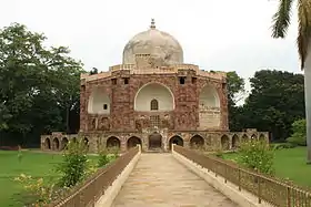 The mausoleum has a double dome and seems to have been a garden tomb and vav or stepwell to its across west the modern road was perhaps used for supplying the water to the garden.[3] fjf