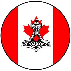 Unlike Ásatrú in the United States, the Folkish - Universalist divide is not readily apparent in Canada. This issue is dominated by factions of those Heathens claiming that only those of Germanic ancestry may practice the folk-way (Folkish) while others claim that no such requirement exists (Universalist). It is the attitude of most Canadian Heathens that no person has the right to discriminate against another's willingness to adherence to heathen custom and many Canadian Heathen organizations have reaffirmed that.[11][12] In Canada, racialism is marginalized within the mainstream Heathen community. However, some white supremacist and neo-Nazi organizations in Canada do co-opt Heathen symbols for their own purposes, but are outcast by Heathen organizations.[13]