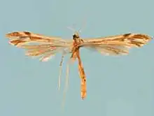 - ↑ Beccaloni, G.; Scoble, M.; Kitching, I.; Simonsen, T.; Robinson, G.; Pitkin, B.; Hine, A.; Lyal, C., eds. (2003). "Pterophorus pelospilus". The Global Lepidoptera Names Index. Natural History Museum. Retrieved April 20, 2018.