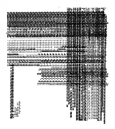 Such contact was vital while Werkman was building up his business and could not leave Groningen. In 1929 he was able to visit Cologne and Paris, after which he developed a new printing method, applying the ink roller directly to the paper and then stamping to achieve unique effects on a simple handpress.[5] The more complex of these required some fifty handlings in and out of the press and could take a whole day to complete.[6] Another of his experimental techniques was the painstaking production of abstract designs using the typewriter, which he called tiksels.[7] After 1929 he also began writing rhythmic sound poems.[8]