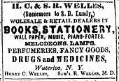 Welles went into the drug business with his cousin, Dr. Samuel R. Welles by 1855. He married Josephine Shotwell in 1857 and had two children, Sterling Hadley Welles and Helen Lavanche Welles, both of whom died in 1861.[3] His cousin left the firm in 1858 but Henry continued with the drug store until he died in Waterloo on July 7, 1868.[2]