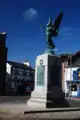 In October 1919, as World War I was drawing to a close, the Royal Academy in London held an exhibition of war memorial designs.[8] At the exhibition Fehr displayed statuettes of three figures, Peace holding a dove, a winged Victory and Saint George with a sword and shield.[8] Bronze statues of these figures appeared on several of the war memorials that Fehr created throughout the 1920s for British towns and cities. All three figures positioned on, or around, a stone obelisk, featured on the memorials Fehr created at Colchester, at Burton-upon-Trent, and, in different versions, on the Leeds War Memorial.[9][10] Several other memorials, including those at Lockerbie and Langholm in Scotland, at Eastbourne and at Grangetown in Cardiff, only featured the figure of Victory, holding a laurel wreath and an inverted sword, on a pedestal or obelisk.[8][9] The memorial at Keighley has a version of Peace with bronze statues of an infantryman in battle dress and a sailor holding a telescope.[10][11]