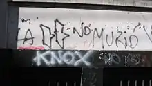 Graffiti in Buenos Aires, which reads "La H no murió" (Spanish: "The H is not dead").