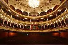 The Hessisches Staatstheater Wiesbaden ('Hessian State Theatre Wiesbaden') is a German theatre located in Wiesbaden, in the German state Hesse. The company produces operas, plays, ballets, musicals and concerts on four stages. Known also as the Staatstheater Wiesbaden or Theater Wiesbaden, its orchestra is the Hessisches Staatsorchester. The building was inaugurated in 1894.