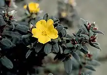 This hibbertia grows near granite rocks and on hills on the Darling Range in the Avon Wheatbelt and Jarrah Forest biogeographic regions of south-western Western Australia.[2][3]