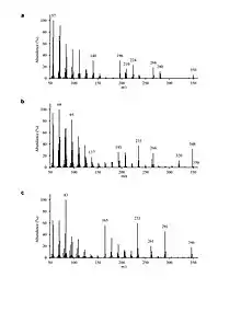 Highly branched isoprenoids and other organic materials can be extracted from sediments for analysis. Coupled gas chromatography and mass spectrometry can be utilized to analyze the organic materials present in the sediments. Peaks can be identified using a gas chromatograph and a mass spectrum, which provide information about the retention time and mass-to-charge ratio of the organic compounds present in the molecule. This allows for the identification of highly branched isoprenoids within a material. To identify highly branched isoprenoids in sediments, typically selective ion monitoring (SIM) is utilized.[3] SIM gathers data at masses of interest within an expected retention time window, enabling the identification and quantification of compounds with high sensitivity. Highly branched isoprenoid I, highly branched isoprenoid II, and highly branched isoprenoid III are identified and quantified via SIM using the characteristic mass spectrum peaks at m/z = 350, 348, and 346, respectively.[5]