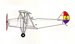 In 1935, before the Spanish Civil War, the second prototype, with its Gipsy engine, new undercarriage and Handley Page slots was displayed at the International Exposition held at Montjuich.[1] Following the restructuring of the Republican Armed Forces in September 1936, the Aeronáutica Naval was merged with the Aeronáutica Militar in order to form the Spanish Republican Air Force.[2]