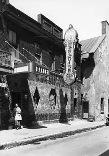 However, Montreal's reputation as a major North American cabaret city was confirmed when New York's leading cabaret star, Texas Guinan, arrived in Montreal in 1930 to open the Cabaret Frolics. This star entertainer and singer was known for shouting "Hello suckers!" as she entered the stage at the start of every performance.[3] Texas Guinan caused a sensation on the Main (Saint Laurent Boulevard) but, more importantly, accelerated the popularity of Montreal, and a host of American cabaret artists (MCs, singers, musicians, etc.) also settled in Montreal.[1] A veritable oasis for anyone seeking to escape prohibitionist policies, Montreal quickly established a reputation as a magnet for tourists, investors and gamblers. Cabarets, clubs and betting parlors made Montreal a city of entertainment.