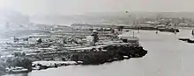 Thus named because it is the area within the city limits that is on the west side of the Mississippi River, the West Side neighborhood is essentially south of downtown. Until the Treaty of Traverse des Sioux, the West Side belonged to the Dakota people, and hence unavailable for settlement. After the 1851 treaty, it was available, but due to frequent flooding, prior to 1880, few people lived on the "flats." French-Canadians, Irish, and especially Germans lived on the banks and bluffs out of the flood zone; in 1874, the West Side was annexed by the city of Saint Paul. In 1882 a trainload of 200 Eastern European Jews arrived, having fled genocide in their homelands. Having no money, they initially set up tents on the lowlands on the West Side, Saint Paul. The tents gradually gave way to small houses and over the subsequent three decades, more refugees joined them, coming from Russia, Lithuania, Poland, Syria, and Lebanon. Synagogues and a Hebrew school were built. The neighborhood was bound by geography, with the river forming the west, north, and east boundaries and the bluffs demarking the southern one. Elevation divided the area economically and ethnically. After World War I, the flats began to be populated by Mexican-Americans who came to Minnesota to work in meat packing plants and the sugar beet fields, some of whom settled there permanently. The Neighborhood House, a community support resource for social services was founded by the eastern European Jews, and became a haven for the Mexican immigrants in the 1920s and 1930s. The organization provided services such as English, sewing, and cooking classes, and employment referrals.[18] As the Jewish residents built wealth and moved to higher ground, they rented their modest houses on the lowlands to the Mexican immigrants.[4] The African-American architect, Clarence W. Wigington (18831967) designed several structures in the city, including the Harriet Island Pavilion. Little is left of the historical lowlands, as in the early 1960s, the entire neighborhood was bulldozed for urban renewal, destroying most of the historic structures on the lower West Side;[46] but many of the homes of the wealthier residents on the high bluffs survive, including the Heimbach House and the Anthony Yoerg House.