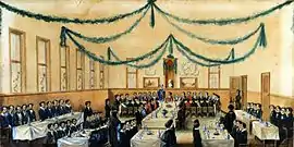 The new school was praised by some; the Reverend Thomas Radcliffe stated in an 1833 letter: "Future generations will bless the memory of Sir John Colborne, who, to the many advantages derived from the equity and wisdom of his government, has added that of a magnificent foundation [in Upper Canada College] for the purposes of literary instruction. The lowest salary of any of the professors of this institution is £30 per annum, with the accommodation of a noble brick house and the privilege of taking boarders at £50 per annum."[4] However, the costs of the new buildings, combined with the large staff and their high salaries, led to criticism of the college and its expenses. In his publication Colonial Advocate, William Lyon Mackenzie stated: "The College here at York in Upper Canada is most extravagantly endowed... thousands of pounds are realised at will by its self-constituted managers from the sale of school lots and school lands [in fact, not true]... splendid incomes given to masters... and dwellings furnished to the professors... by the sweat of the brow of the Canadian labourer."[5] In 1837, UCC's student militia offered help to Sir Francis Bond Head's Family Compact government in suppressing Mackenzie's pro-responsible government Upper Canada Rebellion. In 1852, Mackenzie's sons, William and George, were enrolled at UCC.[1]
