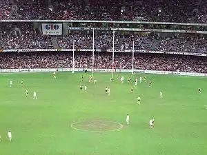 The Victorian Football League was established in 1896 when six of the strongest clubs in Victoria—Collingwood, Essendon, Fitzroy, Geelong, Melbourne, and Sydney Swans—broke away from the established Victorian Football Association to establish the new league.[1] The six clubs invited two more VFA clubs—Carlton and St Kilda—to join the league for its inaugural season in 1897. Among the notable initiatives established in the new league was an annual finals tournament rather than awarding the premiership directly to the team with the best record in the season; additionally, the formal establishment of the modern scoring system was set in which six points are scored for a goal, and one point scored for a behind.