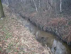 Holtebach is a small river of North Rhine-Westphalia, Germany. It flows into the Schwarzwasserbach near Hövelhof.