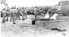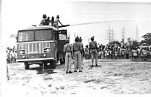 The Maharashtra Home Guards was utilised by the Civil Defence[4] which came into existence in 1952 under the name of Home Defence (New Civil Defence Act is 27 of 1968). In view of these the Maharashtra Home Guards and the State Government could assist Central Government in organising the Home Guards and Civil Defence creditably during External aggression in 1962. On some occasions the organisation went out of its lawful jurisdiction in order to render help as during the floods in Surat in 1956; civil defence measures organised in Assam in 1962; special services rendered at the exposition of St Xavier's body in Goa in 1964, etc. They also rendered yeomen's service during several strikes of Bombay Municipal Corporation employees, and fully manned the essential services such as fire brigade, water supply and hospital services for a number of days.[4] At this time the Home Defence was permitted to be brought to limelight by changing the Home Defence to Civil Defence. The policies of State Civil Defence Committee were based on the directives issued by the Government of India.