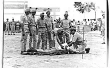 The Home Guard of India is a volunteer force tasked to be an auxiliary to the Indian police.[1] The Home Guards Organisation was reorganised in India in 1966 after the Sino-Indian War with the People's Republic of China, though it existed in smaller units individually in some places. Home Guards are recruited from various cross sections of the civil society such as professionals, college students, agricultural and industrial workers (but only to the government) etc who give their spare time for betterment of the community. All citizens of India, in the age group of 18–50, are eligible. Normal tenure of membership in Home Guards is three to five years.[2]