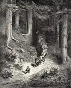 Gustave Doré contributed 11 illustrations to an 1862 edition of Perrault's book, Les Contes de Perrault.[8]