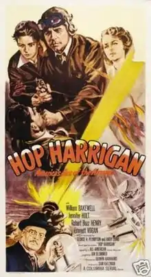 Hop Harrigan (aka Hop Harrigan America's Ace of the Airways) (1946) is a Columbia film serial, based on the Hop Harrigan comic books by DC Comics.[1] The serial comprised 15 two-reel chapters with Derwin Abrahams as the director, and Sam Katzman, the producer.[2] Columbia Pictures was one of the last Hollywood studios to continue in postwar years with the serial format. By 1947, Universal Pictures discontinued their serials, with only Republic Pictures and Columbia continuing with serials. The last serial was Columbia's Blazing the Overland Trail (1956).[3]
