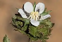 Horkelia cuneata is a species of flowering plant in the rose family known by the common name wedgeleaf horkelia. It is endemic to California, where it grows in coastal chaparral communities and sandy areas. This is a matting or clumping perennial herb producing erect green or red stems up to 70 centimeters tall. The fernlike green leaves are up to 30 centimeters long and are made up of toothed, oval-shaped leaflets each one or two centimeters long. The foliage and stems are often quite hairy. The inflorescence holds several flowers, each with narrow, pointed bractlets and wider, reflexed sepals. The sepals and five white petals may be tinted with bright pink. The center of the flower holds ten stamens and up to 60 small pistils.