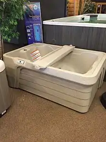 In 2019 an update to the ANSI standard for energy efficiency was approved. For the first time, this new standard increases the minimum energy efficiency level for portable spas and inflatable spas.[9][10] Hot tub covers have been shown to reduce most of the evaporative losses from the pool when not in use. With this component of heat loss being 70%,[11] a cover with even a small R-value is able to achieve as much as a 75% reduction in heating costs when used as opposed to leaving the water surface exposed.[12]
