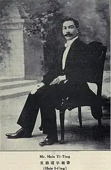 Hsia Yi-Ting (Chinese: 夏詒霆; pinyin: Xià Yítíng; 1878–1944), was a diplomat of the Republic of China.