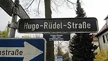 Road sign on the Hugo-Rüdel-Straße in Bayreuth.